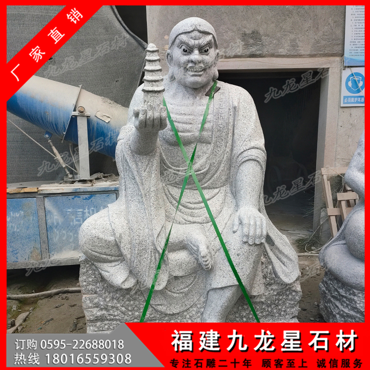 看著每一尊寺院十八羅漢石像,不得不感嘆古人的智慧啊。這些被珍藏的十八羅漢塑像,保存的如此完好,這還是要歸功于,十八羅漢塑像是采用的天然石材手工雕刻而成,純天然的石頭在大自然中被人們開鑿來制作成十八羅漢石像作品,這樣的一整套十八羅漢作品,不僅帶著天地精華,也將人們的智慧和工藝賦予其中,石刻十八羅漢就是最好的安排了吧。古代十八羅漢帶有歷史沉淀的韻味,具有很高的研究價值。而現(xiàn)代十八羅漢雕刻為了能有這樣的一份感情,開始了對石雕18羅漢仿古做舊的技術,也更符合一些古建筑,古剎寺院去擺放仿古代石雕十八羅漢擺件。