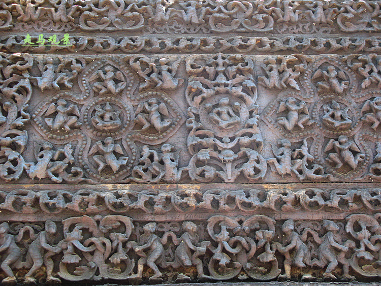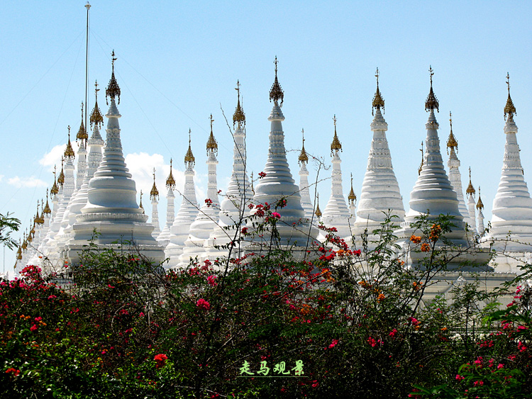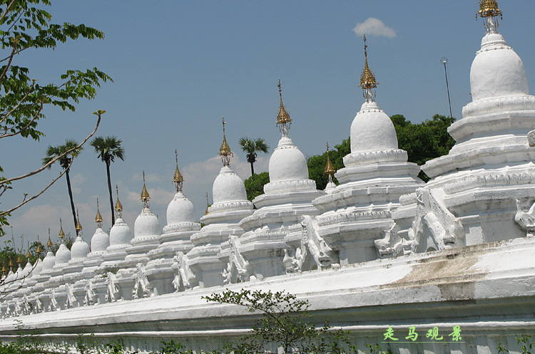 阿都瑪希寺廟里,由729塊大理石雕刻成的經(jīng)書,組成了整齊圣潔的佛塔,在陽光和鳳凰樹紅色花球的環(huán)繞中,看著這些潔白的石經(jīng),心里會(huì)有平靜浮起。