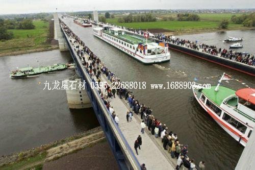 橋不僅用于居民行走,甚至還可以行船運(yùn)輸,這就是德國巨大的馬格德堡水橋,它位于易北河-哈弗爾河和米特蘭爾運(yùn)河之間。這座1公里長的橋中橋是于2003年開通投入使用的。共用了6年時(shí)間進(jìn)行建造,花費(fèi)了5億歐元。