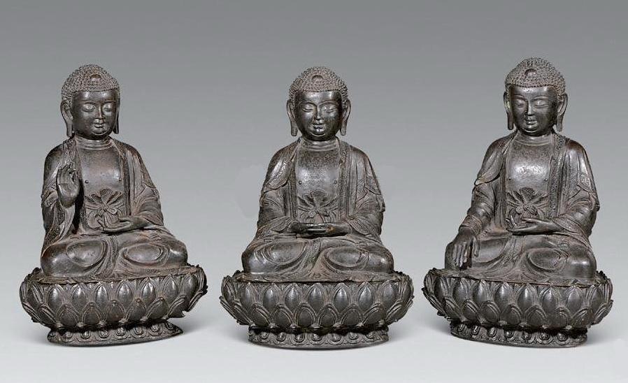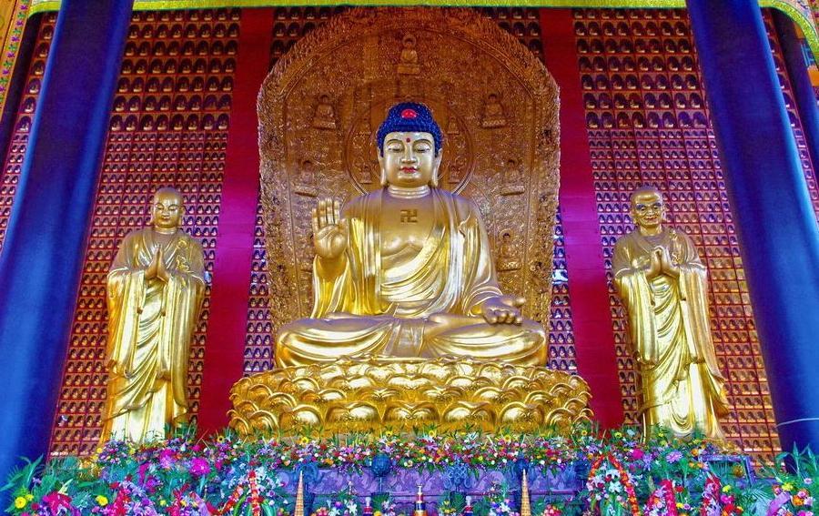 三佛──在大雄寶殿內(nèi)三尊佛像并排而坐。不論漢傳及藏傳佛教,一律都是如來相。諸佛可從手印、標(biāo)幟和座次來確認。