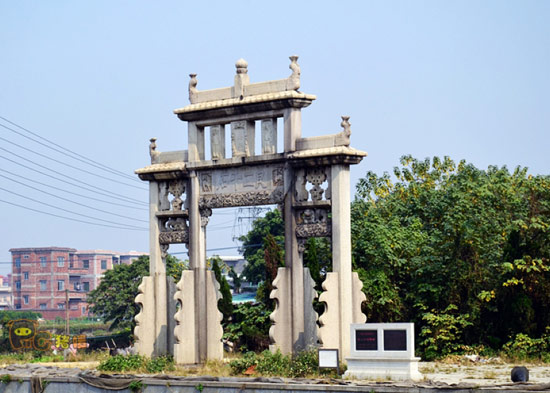 牌坊高7米,長11.94米,以花崗石雕鑿構(gòu)筑,石雕有蹲伏獅子及鳥類花木圖案,四柱三間樓式牌坊,正面上刻:“恩榮”二字,下方是“良二千石”四字,右側(cè)刻“兩廣軍務巡撫廣東地方口口口右都御史兵部右侍郎殷正”,左側(cè)刻“萬歷二年甲戊科進士朱壤”牌坊背面刻“賜進士第中憲大夫,四川夔州府知府前福建延平府南平縣知縣,江西樵州府臨川縣知縣,南京戶部主事,戶部員外郎,欽差督理浙江北新關稅務,戶部郎中,贈兵部左侍郎崇杞府縣鄉(xiāng)賢朱壤”。