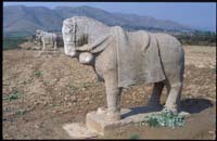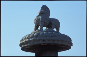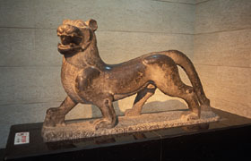 藏王墓位于西藏自治區(qū)瓊結縣,是公元七——九世紀歷代吐蕃贊普的墓葬群,現存石獅一對和石碑、柱等。造型除受中原影響外,樣式特征亦帶有波斯風格影響。