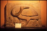 直接表現歌功頌德內容的石雕還有“昭陵六駿”浮雕?!傲E”為“又刻石為常所乘破敵馬六匹于闕下”。(《唐會要?卷二十》)的六件作品。宋游師雄題昭陵圖云:“先葬文德皇后長孫氏,當時陪葬之盛與夫刻蕃酋之像、琢六駿之像以旌武功,列于北闕,,(,“。“六駿”內容完全是夸示武功之作。此種表現形式在后來各陵中演變?yōu)轳匄B浮雕,不再停留于直接夸示武功的意義而上升到以祥瑞禽鳥顯示帝王英明的象征意義。駝鳥在當時被視為“能瞰鋼鐵”的異鳥,高宗認為駝鳥的來獻是“以太宗懷遠所致”,“乃刻像于陵之內”。(《太平御覽?卷九一四》)與駝鳥相類似的內容還有犀牛,獻陵石犀刻有“高祖懷遠之德”字樣,明確了其設置寓意。