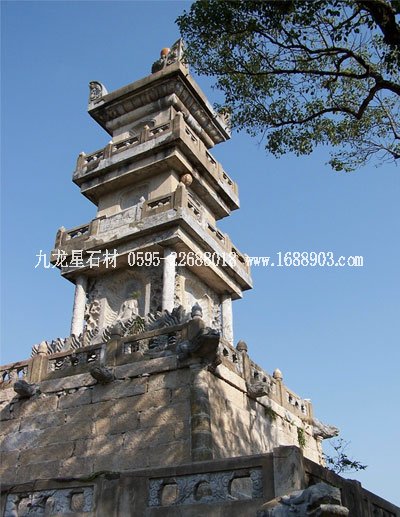 普濟寺東側有座普陀山鎮(zhèn)山之寶的多寶塔,又名太子塔。此塔建于元朝,呈方形,高約18米,雙層塔座,三層塔身,共五層。此塔與龍文化有關的是在基座的四周欄下雕著龍首二十只,張口作吐水狀。雨天時,雨水自龍口流溢,如龍垂液,頗為奇巧。