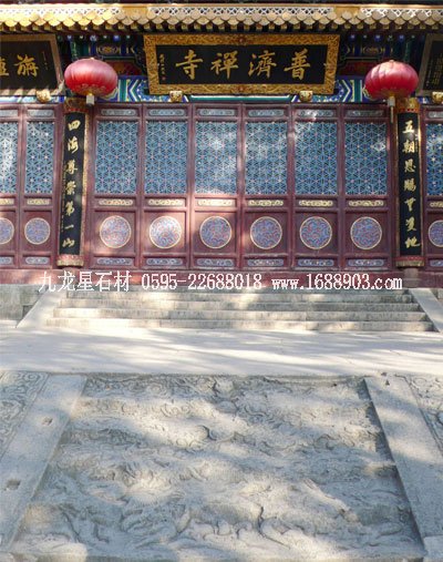 普濟寺正山門前有塊龍階浮雕斜放在步階上。這是一塊約4平方米多大小的青石板,上面雕著“群龍戲珠”圖案。四條蛟龍圍繞中間那顆明珠游動,吞云吐霧,富有動態(tài)感,常吸引眾多游客在此前拍照留影。