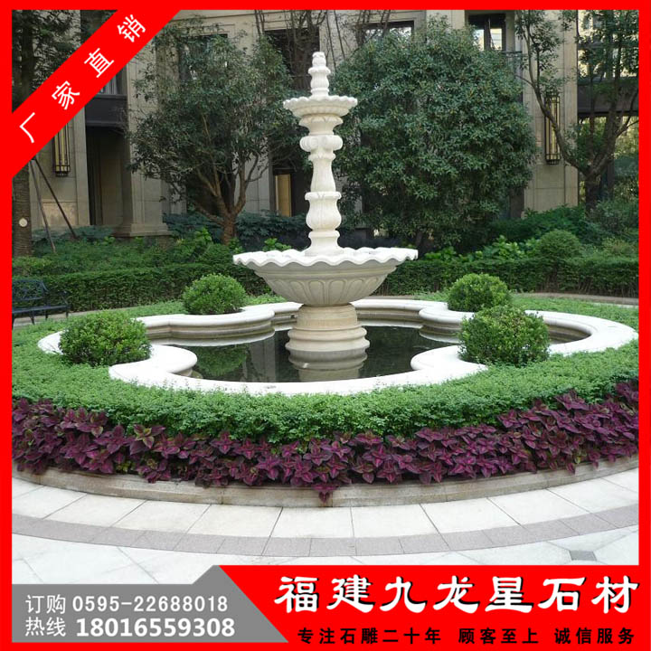 水景形態(tài)有靜水、流水、落水、噴水等幾種這幾種形態(tài)又可衍生出多姿多彩的變化形式,特別是由于噴頭技術(shù)的發(fā)展 ,噴水姿態(tài)更是變化萬(wàn)千。有了這些素材,再通過(guò)專業(yè)人員的藝術(shù)設(shè)計(jì),即可以勾畫(huà)出優(yōu)美的水藝景觀。另外,不同的景觀形式適合不同的應(yīng)用場(chǎng)景。比如音樂(lè)噴泉一般適用廣場(chǎng)等集會(huì)場(chǎng)所。它是以音樂(lè)、水形、燈光的有機(jī)組合來(lái)給人以視覺(jué)和聽(tīng)覺(jué)上的美感;同時(shí)噴泉與廣場(chǎng)又融為一體,形成了建筑的一部分。而住宅區(qū)的樓宇間更適合設(shè)計(jì)溪流環(huán)繞,以體現(xiàn)靜謐悠然的氛圍,給人以平緩、松馳的視覺(jué)享受,從而營(yíng)造宜人的生活休息空間。此外,石雕噴泉的加工石材也是非常的多樣,其中最常見(jiàn)的有漢白玉、黃銹石、黃金麻、大理石、花崗巖等,這樣也使得噴泉的顏色更加廣泛。這樣我們可以根據(jù)園林建設(shè)及小區(qū)別墅整體設(shè)計(jì)的效果,來(lái)決定使用哪類(lèi)色調(diào)的石材來(lái)制作石雕噴泉以及在園林建設(shè)中的應(yīng)用最為合適。