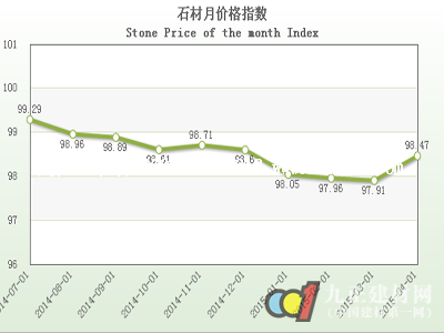 從4月石材周價格指數(shù)走勢圖看,本月石材周價格指數(shù)除2015-04-08期略下調(diào)外,總體基本呈現(xiàn)一路平緩推升的走勢,價格循序漸進調(diào)整。