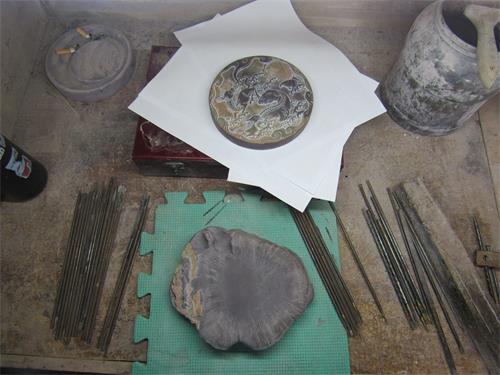圖為胡楊老師正在創(chuàng)作蘑菇硯臺(tái)