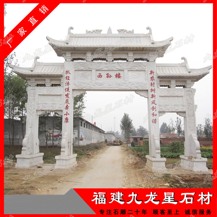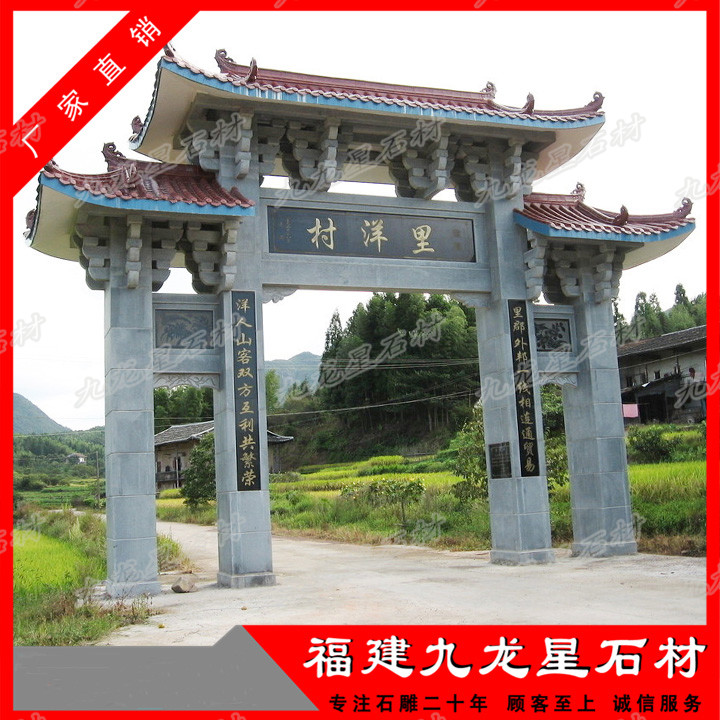 傳統(tǒng)村門口石牌坊雕刻技法的綜合運(yùn)用,使得村門口石牌坊制作極其精美,使進(jìn)村牌坊,村口牌坊設(shè)計(jì)效果圖具有強(qiáng)烈的層次感,產(chǎn)生變化多端的負(fù)空間。村口石牌坊 ...