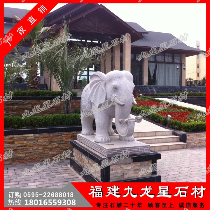 石雕大象也是吉祥如意的意思,吉祥如意就是吉“象”如意,心想事成的含義。大象是一個國家神圣的象征,也是觀音的坐奇,就是觀音的隨身隨行,故而也有去災(zāi)辟邪,保佑自己,佑護(hù)他人的寓意。象諧“祥”之音,傳統(tǒng)習(xí)俗中,象代表了吉祥?!跋蟆蹦芙o人間帶來祥瑞,象微天下太平?!跋蟆奔幢硎竞推?、美好和幸福。 大象力大魁武,性靈卻溫和柔順,相傳象為搖光之星生成,能兆靈瑞,古佛就是乘象從天而降;只有在人君自養(yǎng)有節(jié)時,靈象才出現(xiàn)。